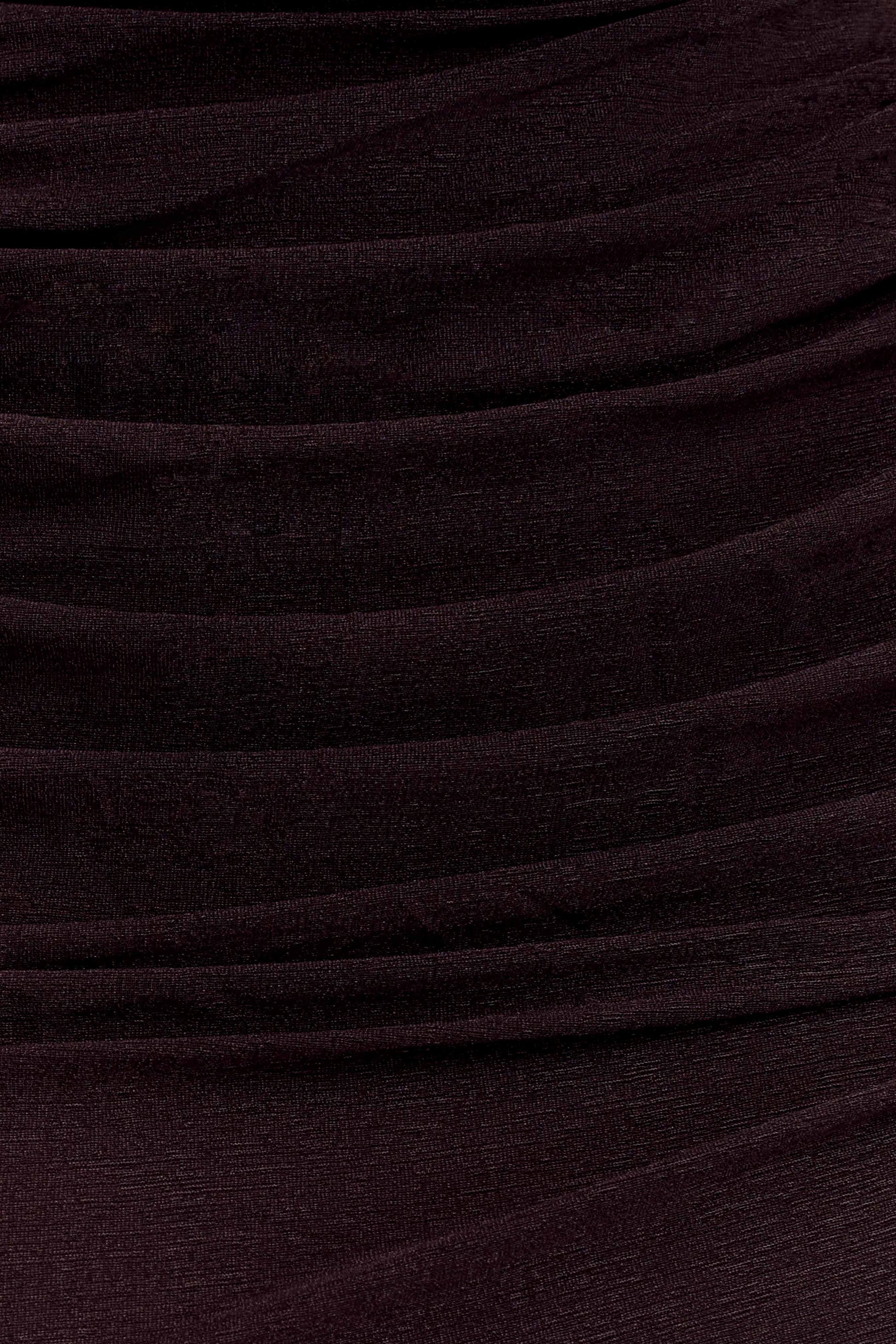 The MATILDA Ruched Mesh Bodysuit is a sleek layering piece designed with subtle texture and modern edge. Featuring a high neckline and sleeveless cut, it’s detailed with soft gathering through the bodice for a flattering effect. Fully lined for comfort, it fastens with a back neckline button closure and a snap gusset for ease of wear. Streamlined and fitted, this bodysuit is the perfect balance of everyday versatility and after-dark polish.