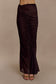 The MATILDA Ruched Mesh Maxi Skirt is designed to flatter with soft gathering and a sleek, elongating silhouette. Sitting at the mid waistline, it’s detailed with ruched accents throughout and a front godet insert that adds subtle volume and flow. Fully lined for comfort and cut to a maxi length, this skirt balances structured fit with fluid movement—perfect styled with its coordinating bodysuit for a statement set moment.