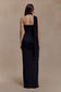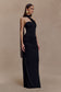 Fluid drape, sculpted silhouette.