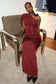 Slinky And Mesh Maxi Dress With Scarf - Burgundy