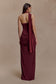 Fluid drape, sculpted silhouette.