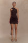 Slinky And Mesh Mini Dress With Scarf - Dark Chocolate