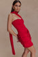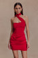 Slinky And Mesh Mini Dress With Scarf - Red