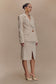 The MAX Cinched Waist Blazer is a refined take on classic tailoring, designed to sculpt and empower. Featuring a notched lapel, V-neckline, and structured shoulder pads, this blazer flatters with a cinched, fitted waist and functional button front closure. Faux front flap pockets add a clean finish, while full lining ensures all-day comfort and polish. Pair with the Vera Twill Split Front Midi Skirt for a power pairing that blends timeless structure with modern sophistication.