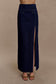 The MAYLENA High Rise Denim Maxi Skirt is cut to flatter with its super high-rise waistline and wide waistband panel. Designed with front pocket flaps for subtle structure, it features a sleek maxi length with a side leg split that adds movement and allure. A clean back zip closure completes the look, making this skirt a versatile piece that transitions seamlessly from casual daytime styling to refined evening edits.