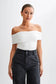 The MEENA Recycled Nylon Off-Shoulder Top seamlessly blends sustainability with style. Boasting an off-shoulder design and a ruched, foldover neckline, it adds texture and dimension to the look. With a slight bodycon fit, it flatters the silhouette while ensuring comfort. The cropped torso design introduces a playful element, making it a versatile piece suitable for various occasions. Crafted from recycled nylon, this top not only reflects a fashion-forward taste but also promotes a more sustainable wardrobe. Elevate your look with the chic Meena Off-Shoulder Top.