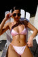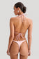 This is a cheeky bum cut bikini bottom with braided side straps, nylon-and-spandex lining, and a flattering, low-rise hem. Feel fresh and flirty in MELIKA’s teasing design; a modestly wide front with a visibly smaller (and cheekier) back creates the most alluring visuals. No need to worry about staying covered, either; the braided strings and the quality nylon-and-spandex fabric blend are made for long wear. Whether you’re wearing MELIKA for an afternoon swim or a whole-day beach-hopping event, she’ll keep you feeling sexy and secure. Pair with our Sachi Triangle Bikini Top for a matched look.
