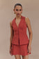 The Melinda Mini Skirt with Pleats is the perfect blend of sophistication and fun. Designed with a flattering high-waisted fit, this skirt accentuates your waist and creates a streamlined silhouette. The side zip with a hook and eye closure ensures a secure and comfortable fit, making it easy to wear all day long. Front and back pleat details add a touch of playful elegance, allowing the skirt to move gracefully with every step. With its mini length, this skirt is ideal for pairing with the Melinda Structured Vest Top for a chic, coordinated look that transitions effortlessly from day to night.