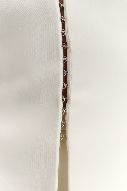 The Melinda Mini Skirt with Pleats is the perfect blend of sophistication and fun. Designed with a flattering high-waisted fit, this skirt accentuates your waist and creates a streamlined silhouette. The side zip with a hook and eye closure ensures a secure and comfortable fit, making it easy to wear all day long. Front and back pleat details add a touch of playful elegance, allowing the skirt to move gracefully with every step. With its mini length, this skirt is ideal for pairing with the Melinda Structured Vest Top for a chic, coordinated look that transitions effortlessly from day to night.