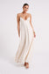 MELISSANDRE is a babydoll maxi dress, designed in a minimalist colourway that induces sophistication and grace. It features an elegant V neckline with bust cups and a loose-fitting silhouette. It is also designed with a cross open back, combined with a statement-making tie detail. It is fully lined for a polished finish, eliminating the show-through and ensuring a refined look.
