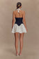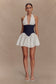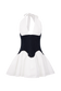 The MERLYN Denim Cotton Mini Dress is a statement in mixed textures and feminine shape. Featuring a halter neckline with soft poplin bust cups and a gathered poplin skirt, this mini dress is defined by a structured denim waist panel that cinches the silhouette. A scalloped bodice hem adds a delicate touch, while the centre back zip ensures a secure fit. Fully lined for comfort, this dress is perfect for day events, spring outings, or anytime you want to blend softness with structure.