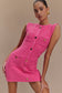 The MIA Knit Mini Dress is a contemporary and stylish choice that combines classic elements with modern design. Featuring a boat neckline and sleeveless cut, this dress offers a chic and streamlined look. The non-functional button front closure adds a touch of detail, while the thick textured knit fabrication provides both structure and comfort. Functional front pockets enhance the practicality of this mini length dress, making it both fashionable and convenient. Unlined for a lightweight feel, this dress is perfect for a variety of occasions, delivering effortless style with a contemporary edge.