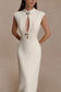 The MICHELLE Cut Out Maxi Dress is designed for impact with its sharp lines and refined finish. Featuring a high neckline and a centre-front cut-out, it’s accented with hardware trim along the front for a polished edge. Seamline details contour the fitted, straight-line silhouette, while structured shoulders balance the sleeveless cut. Fully lined and finished with a centre back invisible zip, this dress delivers sleek modern elegance with a confident twist.