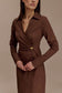 The MIKAILA Asymmetric Shirt Dress brings a directional twist to classic tailoring. Featuring an asymmetric collared neckline and a cross-front opening that secures with an internal snap button closure, it’s finished with a decorative gold button for subtle polish. Long sleeves with buttoned cuffs add structure, while a centre back split ensures ease of movement. Cut to a midi length and left unlined for a lightweight drape, this dress is a refined balance of sharp tailoring and modern minimalism.