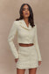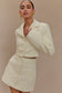 The MIRELLE Textured Boucle Cropped Long Sleeve Top brings classic elegance with a modern twist. Featuring a sophisticated collared neckline and button-front closure, this cropped top offers a polished silhouette enhanced by structured shoulders. Crafted from luxurious boucle fabrication and fully lined for comfort, it’s the perfect blend of texture and tailoring. Pair it with the Mirelle Textured Boucle Mini Skirt for a coordinated look that’s effortlessly stylish and refined.