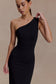 One Shoulder Crepe Maxi Dress - Black