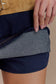 The MIRANDA Faux Suede Belted Denim Mini Skirt brings texture play into focus. Designed with a mid-rise waist and A-line silhouette, this mini flatters while offering ease of movement with built-in internal shorts. A faux suede waistband adds contrast and structure, finished with a bold double buckle front and a sleek side zip closure. This skirt is your go-to for standout styling that feels as good as it looks.