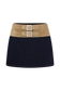 Faux Suede Belted Denim Mini Skirt - Indigo Blue