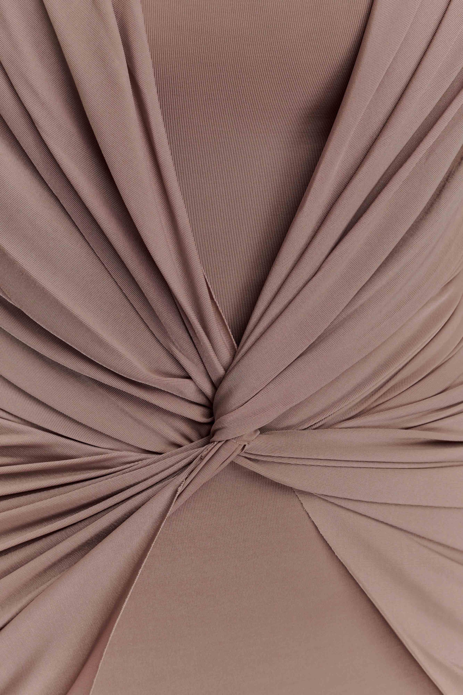 The MIRREN Strapless Slinky Maxi Dress is cut to flatter with minimal effort and maximum impact. Designed with a sleek strapless neckline and a fitted bodice, it features a front knot detail that adds subtle texture and shape. Fully lined for a smooth fit and crafted without a zipper for a seamless pull-on design, this dress is made to move with you—perfect for evenings that call for effortless elegance.