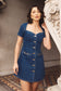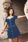 Add a touch of playful sophistication to your wardrobe with the MONICA Sweetheart Denim Mini Dress. Featuring a flattering princess neckline and charming short sleeves, this dress exudes feminine elegance with a modern twist. The functional button-front closure allows for customisable styling, while the mini length keeps the look fresh and flirty. Non-functional front pockets with special buckle hardware add a unique, edgy detail that sets this denim dress apart. Perfect for casual outings or dressing up with heels and accessories, this dress effortlessly combines timeless denim with contemporary style.
