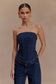 The MONTE Strapless Diamante Denim Corset is a show-stopping blend of structure and sparkle. Featuring a strapless neckline and a fitted bodice, this corset contours the body with a flattering longline silhouette and a rounded front hem. The back zip closure ensures a secure and seamless fit, while scattered diamante detailing adds a touch of glamour to classic denim. Designed to elevate your day-to-night dressing, this corset is your new go-to for effortless edge with a hint of shine.