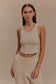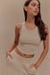 The MORGANA Ribbed Tank Top is a versatile staple that blends comfort with modern style. Featuring a crew neckline and a racer-back shape, this top offers a sleek and sporty silhouette. The cropped length and rounded hem add a flattering, contemporary touch, making it perfect for layering or wearing on its own. Crafted from ribbed fabrication, it provides both texture and stretch for a comfortable fit. Finished with binded neckline and armholes, this tank combines durability with polished details. Pair it with the Campbell Cotton Wide Leg Pants for a relaxed yet refined outfit that transitions effortlessly from lounging to stepping out.