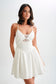 Introducing our MURIEL Cotton Mini Dress With Crochet, a charming piece that exudes timeless elegance. The V neckline delicately frames the dress, while the front crochet flower detail adds a touch of whimsical charm. With adjustable straps ensuring a perfect fit, this dress is as comfortable as it is stylish. The side zipper with hook & eye closure ensures easy wear, while the full mini skirt, enhanced by a tulle underlay, adds volume and movement to your every step. Perfect for any occasion, this mini-length dress promises to make you feel effortlessly chic and feminine. Elevate your wardrobe with the Muriel Mini Dress and step into enchanting elegance.
