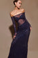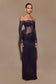 Diamante Off Shoulder Maxi Dress - Navy