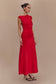 Asymmetric Slinky Midi Dress - Red