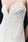 This style is intricately hand-beaded with glass beads, a process that requires up to 200 hours to complete. A dedicated team of 15 work in harmony, with each bead meticulously threaded and sewn by hand, ensuring every detail is flawless. Discover more about our MESHKI Atelier here.