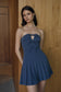Elevate your style with the NAYA Pleated Mini Dress With Ties, a perfect blend of sophistication and charm. This strapless dress features a fitted bodice that accentuates your curves, while the pleated lower skirt creates a flirty and flowing silhouette. The centre back invisible zip offers a seamless fit, ensuring comfort and ease of wear. A delightful front tie detail adds a playful touch, making this dress ideal for both formal occasions and festive gatherings.