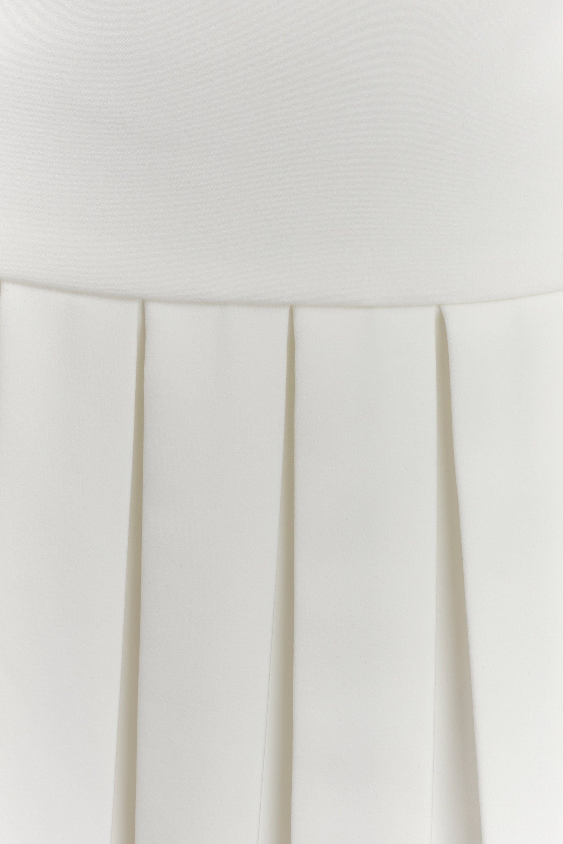 Elevate your style with the NAYA Pleated Mini Dress With Ties, a perfect blend of sophistication and charm. This strapless dress features a fitted bodice that accentuates your curves, while the pleated lower skirt creates a flirty and flowing silhouette. The centre back invisible zip offers a seamless fit, ensuring comfort and ease of wear. A delightful front tie detail adds a playful touch, making this dress ideal for both formal occasions and festive gatherings.
