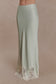 The NINA Satin And Lace Maxi Skirt is a study in softness and sophistication. Crafted from lustrous satin with delicate lace detailing, it drapes effortlessly through a flowing maxi-length silhouette. A lace-trimmed hem adds a romantic touch, creating subtle movement with every step. Fully lined for comfort and finished with an invisible side zip for a seamless fit, this skirt balances timeless elegance with modern ease — perfect styled as a set or paired back with elevated essentials.