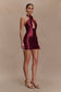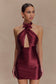 Beaded Halter Mini Dress - Burgundy