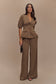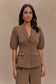 Puff Sleeve Suiting Top - Cacao Brown