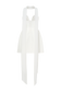 The ORELLIA Strapless Suiting Mini Dress is the perfect blend of sophistication and contemporary bridal charm. Designed with a striking deep plunge neckline and a fitted bodice, this dress flatters with structured tailoring while exuding effortless grace. The sculpted mini skirt creates a sleek, refined silhouette, accented by a statement front bow for a touch of romantic whimsy. A detachable chiffon scarf drapes beautifully, adding soft movement and ethereal elegance. Finished with a back zip for a flawless fit, this dress is a stunning choice for bridal showers, rehearsal dinners, or modern brides looking for a bold yet timeless statement.