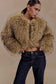 Mongolian Faux Fur Cropped Jacket - Brown Multi
