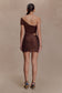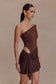 The PAISLEY Slinky And Diamante Mini Dress is a statement silhouette that blends sleek minimalism with refined sparkle. Featuring an asymmetric neckline and a daring cut-out detail, it’s designed to contour the body in a flattering, bodycon fit. The diamante embellishment along the skirt adds subtle shine, while the internal bodysuit with snap-button closure ensures comfort and a seamless finish. Partially lined for balance and ease, this dress redefines after-dark elegance with a bold, modern edge.