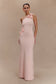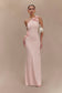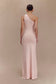 One Shoulder Knit Maxi Dress With Flowers - Baby Pink