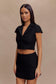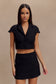 The PARISA Boucle Button Up Top is a chic and elegant piece perfect for elevating any outfit. It features a stylish V neckline with a classic collar and lapel, adding a touch of sophistication. The button front design enhances its timeless appeal, while the cap sleeves provide a flattering and feminine silhouette. Fully lined for comfort, this top is crafted from luxurious boucle fabric that offers both texture and style. The cropped length makes it ideal for pairing with the matching Parisa Boucle Skirt or pants, making the Parisa Boucle Button Up Top a versatile addition to your wardrobe.