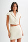 The PARISA Boucle Skirt is a stylish and sophisticated addition to any wardrobe. This high-waisted skirt features a self belt with belt loops, allowing for a customizable fit that accentuates the waist. The A-line shape offers a flattering silhouette, while the mini length adds a playful touch. Crafted from luxurious boucle fabric, the Parisa Boucle Skirt combines elegance with modern flair, making it perfect for both casual outings and dressier occasions. Pair it with the matching Parisa Boucle Button Up Top or a sweater for a chic and polished look.