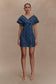 The PASCALE Off Shoulder Denim White Dress brings a fresh take to feminine tailoring. Designed with a Bardot neckline and crossover detail at the front and back, this mini silhouette combines sculptural shape with flattering pleat accents through the bodice. A fitted waist enhances the form, while the mini length keeps it modern and playful. Finished with a back zip for a seamless fit, this dress is your go-to for elevated denim with a romantic twist.