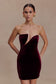 The PAULINA Velvet Strapless Mini Dress is a refined statement piece designed to contour and captivate. Featuring an asymmetric neckline and internal wiring for structure, it frames the décolletage with precision while maintaining a clean, strapless silhouette. Crafted from plush velvet for a soft, elevated finish, it’s fitted through the body in a sleek bodycon cut. Finished with a back zipper closure and a mini length, this dress blends sophistication with sensual simplicity.