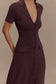 The PEARSON Short Sleeve Knit Midi Dress blends effortless comfort with tailored charm. Featuring a flattering V-neckline with a notched collar and a relaxed fit, this unlined knit dress is designed for easy, all-day wear. The button front adds classic detail, while non-functional pocket flaps at the waist give a nod to suiting. A back waist tie allows for subtle shaping, making this dress the perfect throw-on piece for laid-back days with a refined finish.