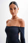 Off Shoulder Modal Long Sleeve Bodysuit - Black