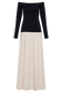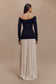 The PRESLEY Contrast Knit Off Shoulder Maxi Dress elegantly merges contemporary style with classic charm. Featuring a Bardot neckline and long sleeves, the knit upper offers a snug, bodycon fit that enhances your silhouette. The contrast between the fitted knit upper and the cotton lower skirt creates a striking visual appeal. The pleated skirt adds a touch of movement and sophistication, while the maxi length ensures a graceful, flowing look. Unlined for a lightweight feel, the Presley Dress is perfect for both daytime events and evening outings, delivering a refined and stylish statement.