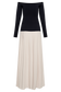 Contrast Knit Off Shoulder Maxi Dress - Navy And Cream