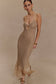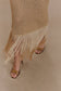 Unleash your inner showstopper in the RAELYNN Metallic Knit Fringe Midi Dress — a daring fusion of vintage-inspired glamour and modern sensuality. Crafted from a striking metallic knit crochet, this dress hugs your figure and catches the light from every angle. The delicate shoulder straps frame a flattering front keyhole detail, while the asymmetrical hemline is elevated by a bold fringe trim that sways with your every move. Designed unlined for a sheer, statement-making effect, this midi dress is your go-to for festivals, parties, and unforgettable nights out.