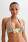 The RHIANNON Floral Crochet Halter Bikini Top exudes a whimsical and chic beachside charm, perfect for sun-soaked days. This bikini top features a functional halter design that provides adjustable support and a comfortable fit. The V neckline enhances its feminine allure, making it a flattering choice for various body types. Crafted from intricate crochet with delicate flower appliqué details, it adds a touch of artisanal beauty to your swimwear collection. The inclusion of a MESHKI golden back clasp not only secures the top in place but also adds a luxurious and stylish accent. Ideal for pairing with your favourite beach cover-up and Skye Floral Crochet Tie Up Bikini Bottom, the Rhiannon top is a stunning piece that combines functionality with fashionable flair.