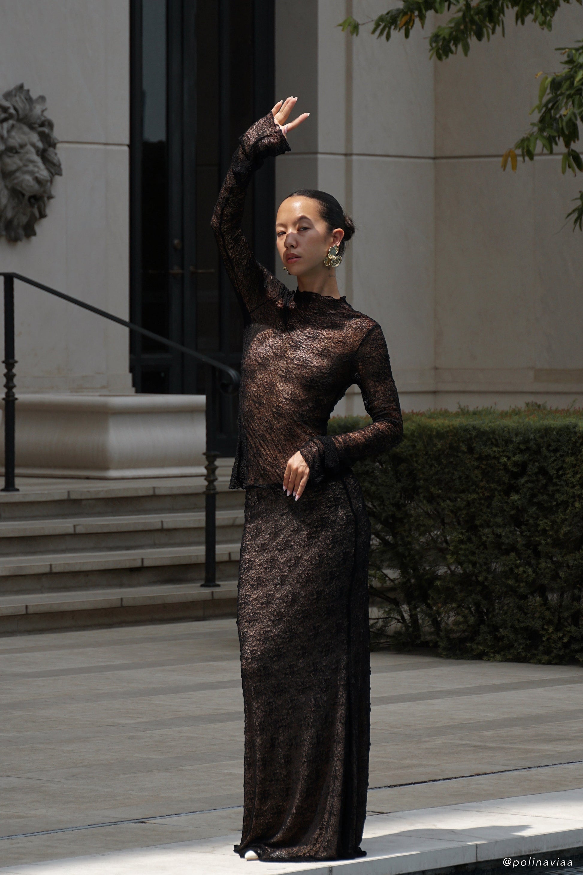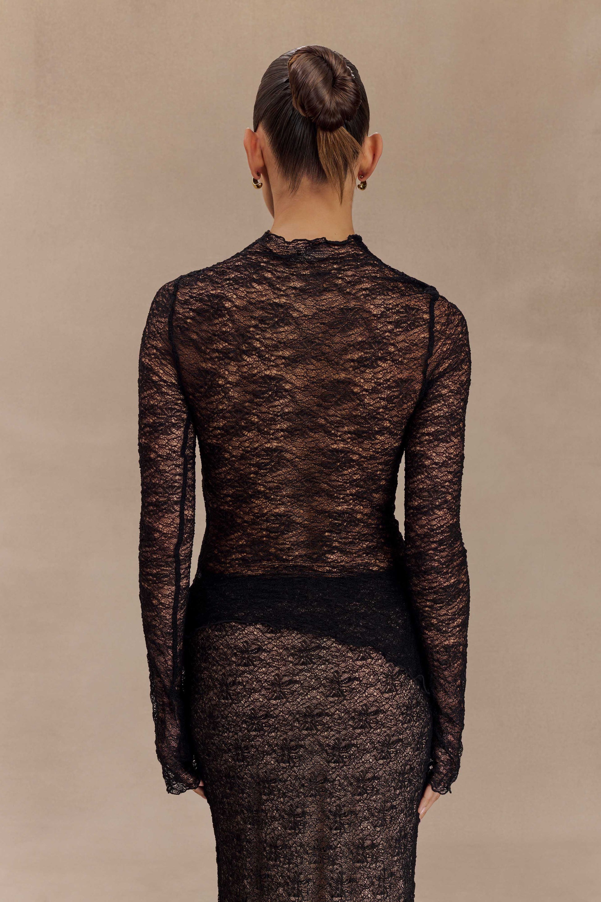 Make a bold impression with the RILEY Sheer Lace Long Sleeve Top, a stunning fusion of elegance and contemporary design. Featuring a sophisticated high neckline and sheer textured fabrication, this top is designed to turn heads. The long sleeves create a refined silhouette, while the asymmetrical hem adds dynamic movement and visual interest. Unlined for a light, airy feel, this top is perfect for layering over a bralette or sleek camisole. Pair it with the Robyn Sheer Lace Maxi Skirt for a bold layered look that exudes confidence.